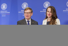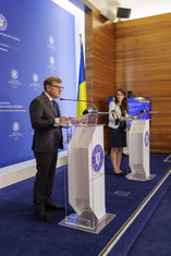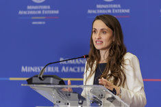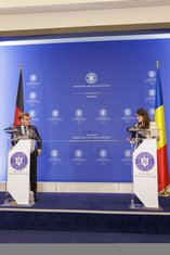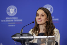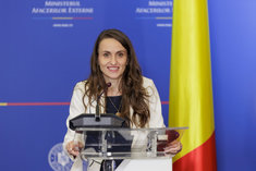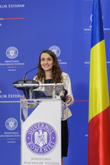 Oana Toiu, Ministerin des Auswaertigen von Rumaenien, aufgenommen im Rahmen einer Begegnung mit der Presse in Bukarest, 14.10.2025. Fotografiert im Auftrag des Auswaertigen Amtes.