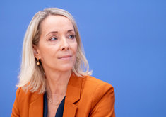 Caption: Stefanie Stoff-AhnisStefanie Stoff-Ahnis, Stellv. Vorstandsvorsitzende, GKV-Spitzenverband, in der Bundespressekonferenz Berlin, 09.10.2025.
