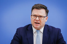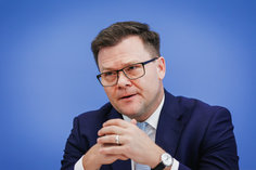 Stichworte: Politik Politics Bundespressekonferenz bpk Federal Press Conference Politiker Politician Portraet Portrait Halbe Figur Halbfigur half-length waist up Anschnitt gate Frontal Von Vorne front view neutraler Hintergrund neutral background Freisteller freistellbar Textfreiraum Text freier Raum Copyspace Copy Space Text Blank sitzend sitzende sitzender sitzendes sitzen sitzt sitting sprechend sprechen spricht sprechende sprechender sprechendes Talking sieht nach links looks to the left