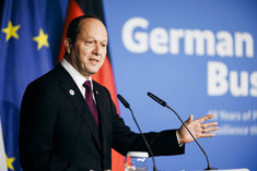 Stichworte: Politik Politics Politiker Politician sieht nach rechts looks to the right Portraet Portrait head headshot Querformat QF Horizontal Halbe Figur Halbfigur half-length waist up Anschnitt gate Neutraler Hintergrund neutral background Textfreiraum textfreier Raum Text freier Raum Copyspace Copy Space Text Blank