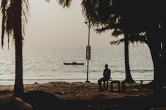 Caption: Lumley BeachEine Person sitzt am Lumley Beach in Freetown, 22.01.2026.