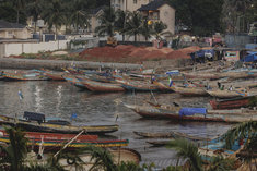 Caption: Lumley BeachBoote im Wasser nahe des Lumley Beach in Freetown, 22.01.2026.