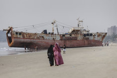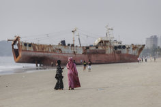 Caption: Lumley BeachEin Wrack von einem Schiff am Lumley Beach in Freetown, 22.01.2026.