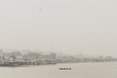 Caption: Lumley BeachEin Boot im Wasser nahe des Lumley Beach in Freetown, 22.01.2026.
