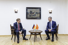 Caption: Aussenminister Wadephul reist in den westlichen BalkanJohann Wadephul (CDU), Bundesaussenminister, aufgenommen im Rahmen eines Gespraechs mit Timcho Mucunski, Minister fuer Auswaertige Angelegenheiten und Außenhandel der Republik Nordmazedonien, in Skopje, 17.11.2025. Fotografiert im Auftrag des Auswaertigen Amtes.