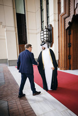 Caption: BM Reiche reist nach Saudi ArabienKatherina Reiche (CDU), Bundesministerin fuer Wirtschaft und Energie, reist mit einer Wirtschaftsdelegation nach Saudi Arabien. Hier Sheikh Khaled Juffali beim Besuch einer Baustelle von Juffali Commercial Vehicles (JCV), exklusiver Vertriebspartner fuer Mercedes-Benz Lkw und Busse in Saudi-Arabien, und Saudi Liebherr Company ltd. Djidda, 01.02.2026 Fotografiert im Auftrag des BMWE
