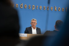 Caption: Landwirtschaftsminister Alois RainerAlois Rainer (CSU), Bundesminister fuer Landwirtschaft, Ernaehrung und Heimat, aufgenommen im Rahmen einer Pressekonferenz zur Veroeffentlichung des Erntebreichts 2025 in Berlin, 03.09.2025.