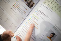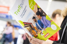 Caption: Deutsch als ZweitspracheSymbolbild: Eine Person blaettert in einem Lehrbuch fuer Deutsch als Zweitsprache. Aufgenommen im Rahmen der didacta Bildungsmesse in Koeln, 10.03.2026.