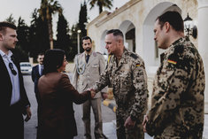 Caption: Entwicklungsministerin Alabali Radovan reist nach NahostReem Alabali Radovan (SPD), Bundesministerin fuer wirtschaftliche Zusammenarbeit und Entwicklung, aufgenommen im Rahmen eines Treffens mit in Jordanien stationierten Bundeswehrsoldaten sowie Till Drinnhausen, Militaerattache an der Deutschen Botschaft in Jordanien, in Amman, 31.03.2026. / Fotografiert im Auftrag des Bundesministeriums fuer wirtschaftliche Entwicklung und Zusammenarbeit.