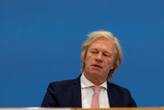Stichworte: Politik Politics Portraet Portrait Bundespressekonferenz bpk Federal Press Conference textfreier Raum Textfreiraum Text freier Raum Copyspace Copy Space Text Blank neutraler Hintergrund neutral background