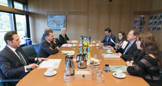 Caption: Friederich Kitschelt, Staatssekrtaer im BMZ trifft eine Delegation aus Ecuador am Rande der COP23Friederich Kitschelt, Staatssekrtaer im BMZ trifft eine Delegation aus Ecuador am Rande der COP23 in Bonn, 15.11.2017. Copyright: Ute Grabowsky/ photothek.net