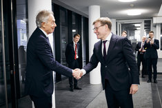 Caption: Johann Wadephul trifft Tony BlairJohann Wadephul (CDU), Bundesaussenminister, trifft Tony Blair zu einem Gesprach in Berlin, 02.12.2025. Fotografiert im Auftrag des Auswaertigen Amtes (AA)