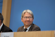 Stichworte: Portraet Portrait neutraler Hintergrund neutral background Freisteller freistellbar sieht nach rechts looks to the right Bundespressekonferenz bpk Federal Press Conference