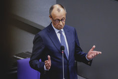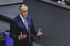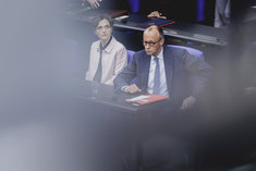 Stichworte: Politik Politics Bundestag Deutscher Bundestag Reichstag German Parliament the Reichstag Parlament regierungsbefragung Gestik gestikulieren gestikuliert Gesture gesturing gestures Neutraler Hintergrund neutral background Textfreiraum textfreier Raum Text freier Raum Copyspace Copy Space Text Blank sieht nach rechts looks to the right Portraet Portrait head headshot Querformat QF Horizontal