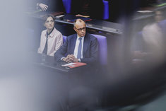 Stichworte: Politik Politics Bundestag Deutscher Bundestag Reichstag German Parliament the Reichstag Parlament regierungsbefragung sieht nach links looks to the left Portraet Portrait head headshot Querformat QF Horizontal nachdenklich thoughtful