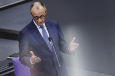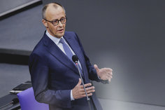 Caption: Regierungsbefragung mit Bundeskanzler Merz in Deutschen BundestagFriedrich Merz (R, CDU), Bundeskanzler, aufgenommen vor der Regierungsbefragung im Deutschen Bundestag in Berlin, 25.03.2026.