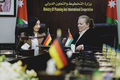 Caption: Reem Alabali-Radovan reist nach NahostReem Alabali-Radovan (SPD), Bundesministerin fuer wirtschaftliche Zusammenarbeit und Entwicklung, trifft Zeina Toukan, Ministerin fuer Planung und internationale Zusammenarbeit des Haschemitischen Koenigreichs Jordanien zu einem Gespraech in Amman, 27.08.2025. Fotografiert im Auftrag des Bundesministerium fuer wirtschaftliche Zusammenarbeit und Entwicklung (BMZ)