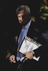 Stichworte: kabinettsklausur ankunft sieht nach links looks to the left Portraet Portrait head headshot Querformat QF Horizontal silhouette shadow play Umriss Kontur Schemenhaft Silouetten outline contour Dimly