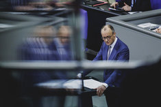 Stichworte: regierungserklaerung government declaration Politik Politics Politiker Politician sieht nach links looks to the left Portraet Portrait head headshot Querformat QF Horizontal Rede Redner Speech speaker stehend stehende stehender stehendes stehen steht standing stands sprechend sprechen spricht sprechende sprechender sprechendes Talking Halbe Figur Halbfigur half-length waist up Anschnitt gate Spiegelung Spiegelbild gespiegelt Reflection mirror image mirrored reflektieren reflektiert widerspiegeln spiegeln Reflektion reflect reflected reflecting