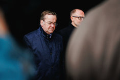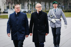 Caption: Boris Pistorius und Andris Spruds(V.r.n.l.) Boris Pistorius (SPD), Bundesminister der Verteidigung und Andris Spruds, Verteidigungsminister von Lettland, aufgenommen im Rahmen eines Empfangs. Berlin, 16.03.2026.