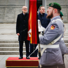 Stichworte: Politik Politics Politiker Politician Militaer Military Bundeswehr German Army Bundeswehr Wachbataillon Militaerische Ehren Military honors Ehrenformation Honour Soldatin Soldatinnen female soldier female soldiers Soldat Soldaten soldiers Stiefel boots