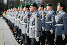 Stichworte: Politik Politics Politiker Politician Militaer Military Bundeswehr German Army Bundeswehr Militaerische Ehren Military honors Wachbataillon Soldat Soldaten Soldier soldiers Soldatin Soldatinnen female Soldier female soldiers Portraet Portrait ganze Figur whole figure Ganzfigur full figure Frontal Von Vorne front view sieht nach rechts looks to the right sieht nach links looks to the left