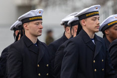 Caption: 70 Jahre BundeswehrZwei Hauptbootsmaenner der Marine beim feierlichen Geloebnis anlaesslich 70 Jahre Bundeswehr in Berlin, 12.11.2025.