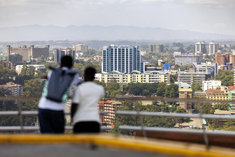 Caption: NairobiZwei Personen schauen auf Nairobi / Kenia. Nairobi, 17.01.2026.