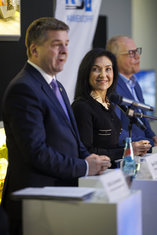 Stichworte: Politik Politics Bundespressekonferenz bpk Federal Press Conference Sicherheit safety security Portraet Portrait neutraler Hintergrund neutral background Freisteller freistellbar sprechend sprechen spricht sprechende sprechender sprechendes Talking sieht nach rechts looks to the right ernst ernste serious