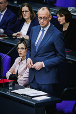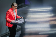 Stichworte: Politik Politics Bundestag Deutscher Bundestag Reichstag German Parliament the Reichstag Parlament Portraet Portrait Halbe Figur Halbfigur half-length waist up Anschnitt gate stehend stehende stehender stehendes stehen steht standing stands sprechend sprechen spricht sprechende sprechender sprechendes Talking sieht nach links looks to the left