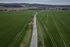 Ein Auto faehrt auf einer Landstrasse, aufgenommen in Wiesa, 10.04.2026.