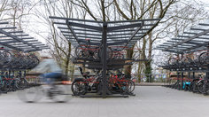 Caption: Ueberdachter Parkplatz fuer FahrraederUeberdachter Parkplatz fuer Fahrraeder. Hoheluftbrücke, Kaiser-Friedrich-Ufer, Kaifu, Hamburg, 19.03.2026.