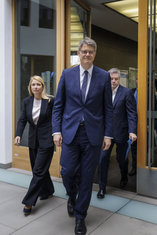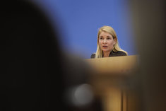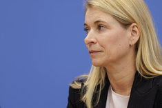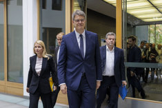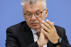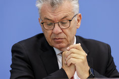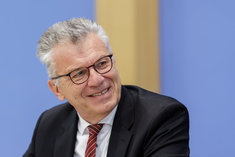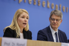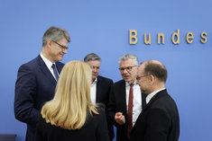 Stichworte: Politik Politics sieht nach rechts looks to the right neutraler Hintergrund neutral background Freisteller freistellbar Bundespressekonferenz bpk Federal Press Conference