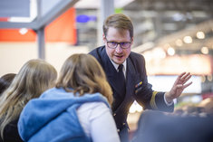 Caption: JugendoffiziereSchuelerinnen und Schueler nehmmen Teil am Planspiel Pol&Is der Bundeswehr im Rahmen der didacta in Koeln, 10.03.2026.