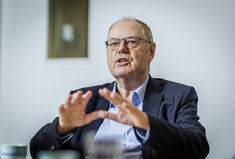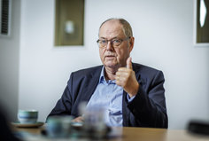 Caption: Peer SteinbrueckPeer Steinbrueck, Bundesminister a.D., SPD, aufgenommen im Rahmen eines Interviews.