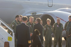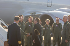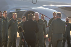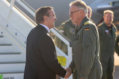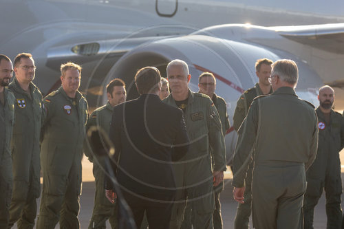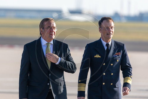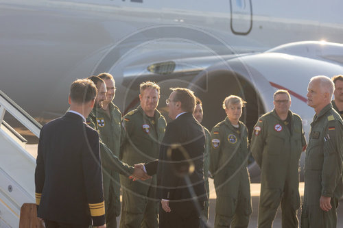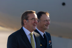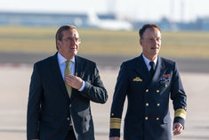 Caption: (L-R) Boris Pistorius (SPD), Bundesminister der Verteidigung und Vizeadmiral Axel Deertz bei der Landung der ersten P-8A Poseidon der Marine in Berlin, 07.11.2025.