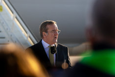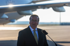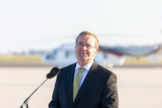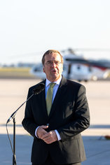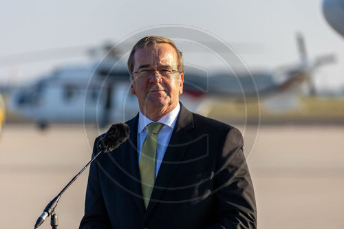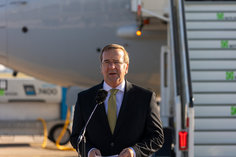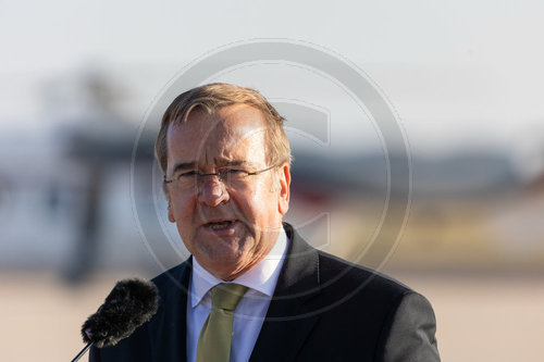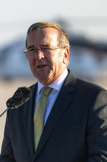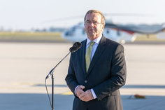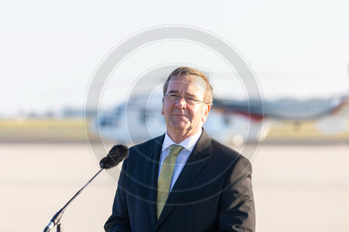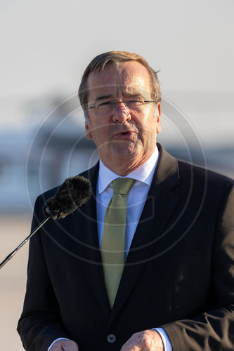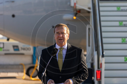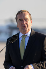 Caption: Boris Pistorius (SPD), Bundesminister der Verteidigung bei der Landung der ersten P-8A Poseidon der Marine in Berlin, 07.11.2025.