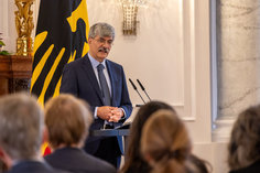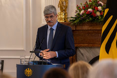 Caption: Prof. Dr. Marcus LlanqueAnsprache von Prof. Dr. Marcus Llanque bei einer Veranstaltung im Schloss Bellevue zum 100.Todestag von Hugo Preuss in Berlin, 26.09.2025.