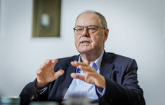 Caption: Peer SteinbrueckPeer Steinbrueck, Bundesminister a.D., SPD, aufgenommen im Rahmen eines Interviews.