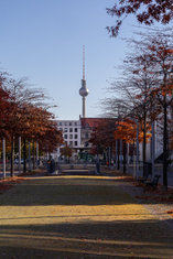 Caption: Herbst in BerlinFernsehturm mit herbstlichen Baeumen im VordergrundBerlin, 20.10.2025.