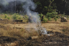 Caption: BrandrodungGras verbrennt am Strassenrand in Gbinti, 22.01.2026.