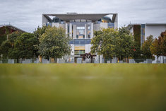 Caption: BundeskanzleramtSymbolfoto. Blick auf das Bundeskanzleramt am fruehen Morgen. Berlin, 26.09.2025.