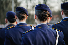 Stichworte: Politik Politics Militaer Military Bundeswehr German Army Bundeswehr Wachbataillon Soldatin Soldatinnen female Soldier female soldiers Von Hinten Rear Ruecken Rueckansicht Reaer View Halbe Figur Halbfigur half-length waist up Anschnitt gate Haare hair Dutt