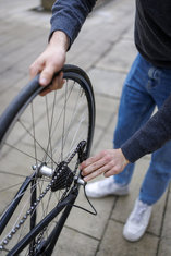 Stichworte: Feature Symbolfoto Symbolbild Symbol picture symbol image Alltag Sport Sports Radsport Cycling Felge Kette Fahrradkette Reparieren Reparatur Rad Rennrad Service Reifen Hinterrad Schlauch Mantel Fahrradschlauch Fahrrad