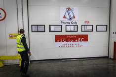 Caption: Frachtterminal Ethiopian AirlinesLagerung von Medikamenten am Frachtterminal von Ethiopian Airlines am Flughafen in Addis Abeba
