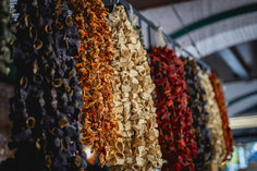 Caption: Getrocknetes GemueseSymbolbild zum Thema Gastronomie. Getrocknetes Gemuese haengt in einem Restaurant in Ankara, 17.10.2025.