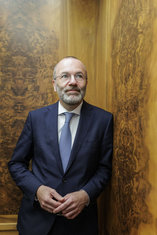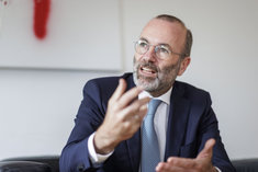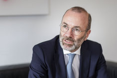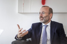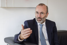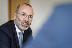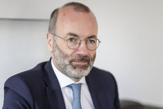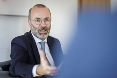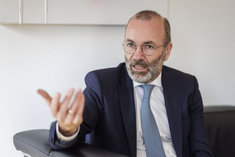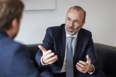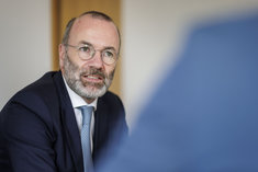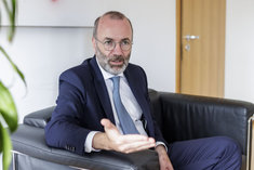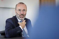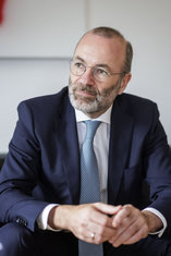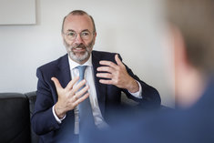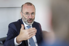 Caption: Manfred WeberManfred Weber, Fraktionsvorsitzender der Europaeischen Volkspartei (EVP) und stellvertretender Parteivorsitzender der CSU, aufgenommen im Rahmen eines Interviews in Berlin, 27.08.2025.
