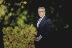 Stichworte: Neutraler Hintergrund neutral background Textfreiraum textfreier Raum Text freier Raum Copyspace Copy Space Text Blank Politik Politics Politiker Politician sieht nach links looks to the left Portraet Portrait head headshot Querformat QF Horizontal gehend gehende gehender gehendes gehen geht laufen laeuft going running
