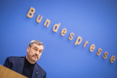 Stichworte: politik editorial Markus Soeder portaet Portraet Portrait head headshot 3 Loewen Allianz textfreier Raum Textfreiraum Text freier Raum Copyspace Copy Space Text Blank Bundespressekonferenz sieht nach rechts looks to the right weit weitwinklig