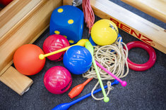 Stichworte: Feature Symbolfoto Symbolbild Symbol picture symbol image Symbol Symbole Symbolisch symbols symbolic creative XCRE Menschenleer Niemand Keine Person Keine Personen Keiner Kein Mensch Keine Menschen Nobody no person no people No one Kind Child Kindheit Childhood Schulbildung Education Erziehung Paedagogik Bildungswesen sport PE physical education Bewegung movement Baelle balls Keulen Springseil skipping rope Schule anonym anonymous Anonymitaet anonymity school